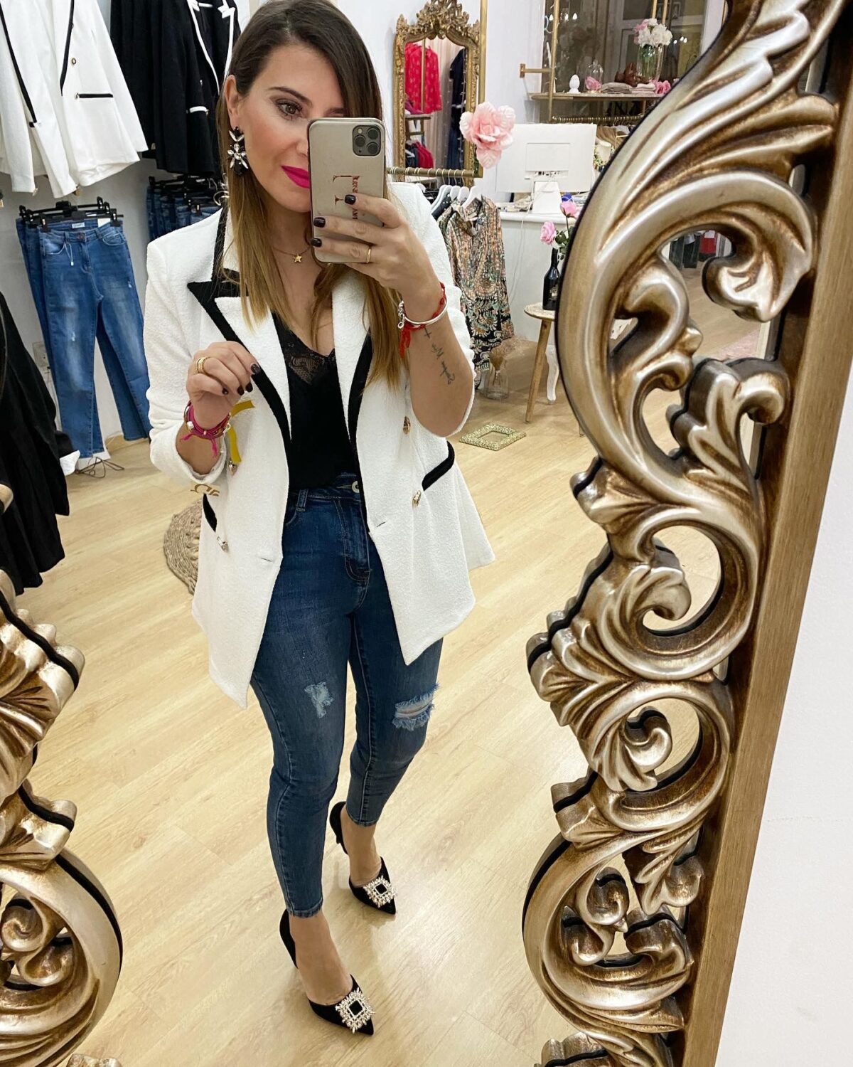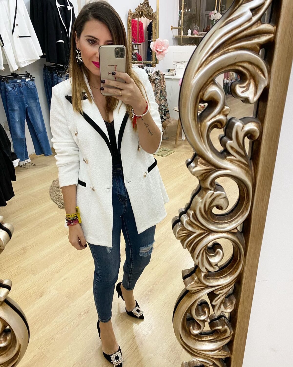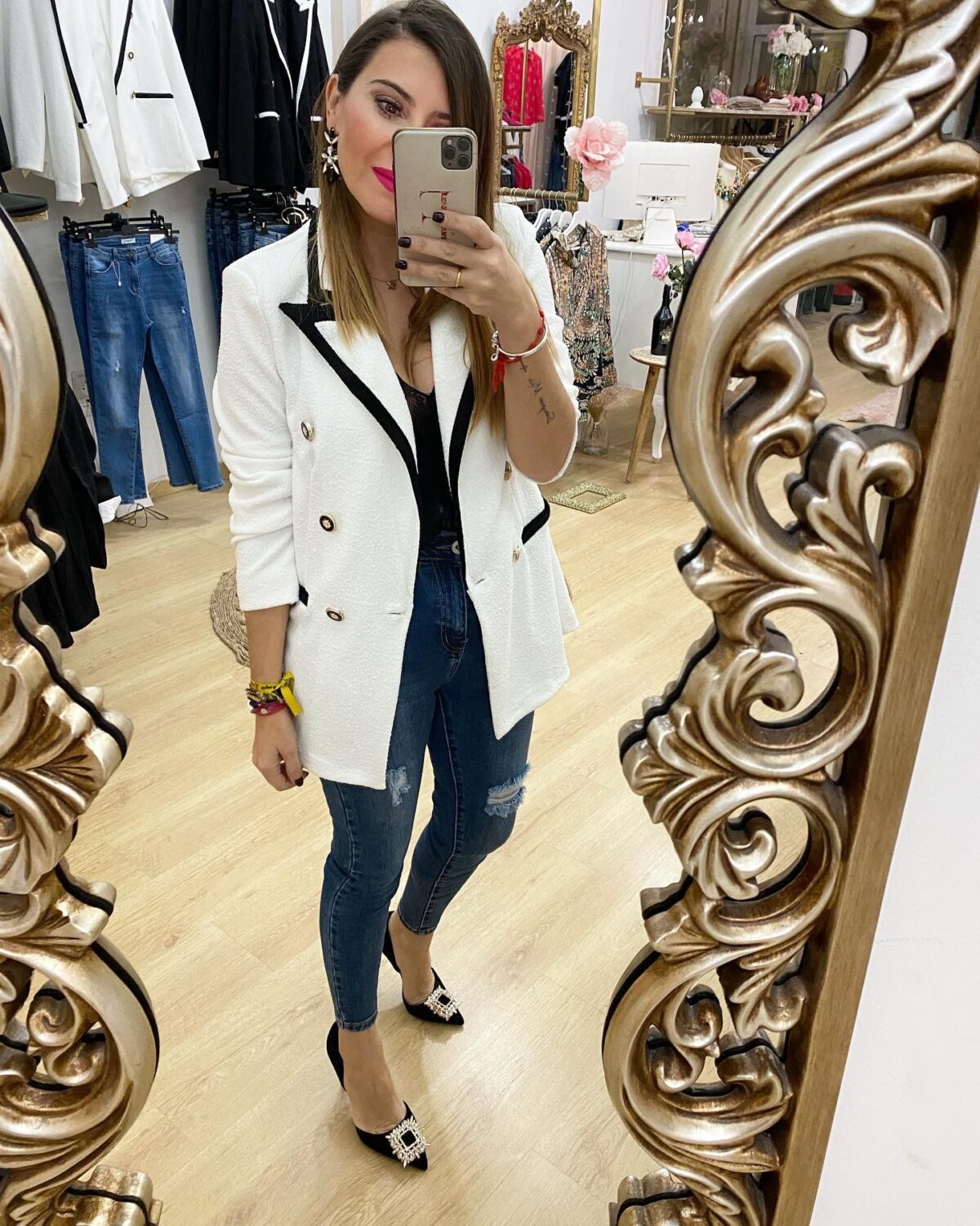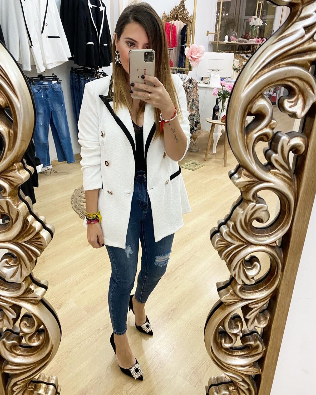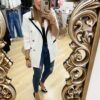 Chaqueta blazers combinada blanco y negro.